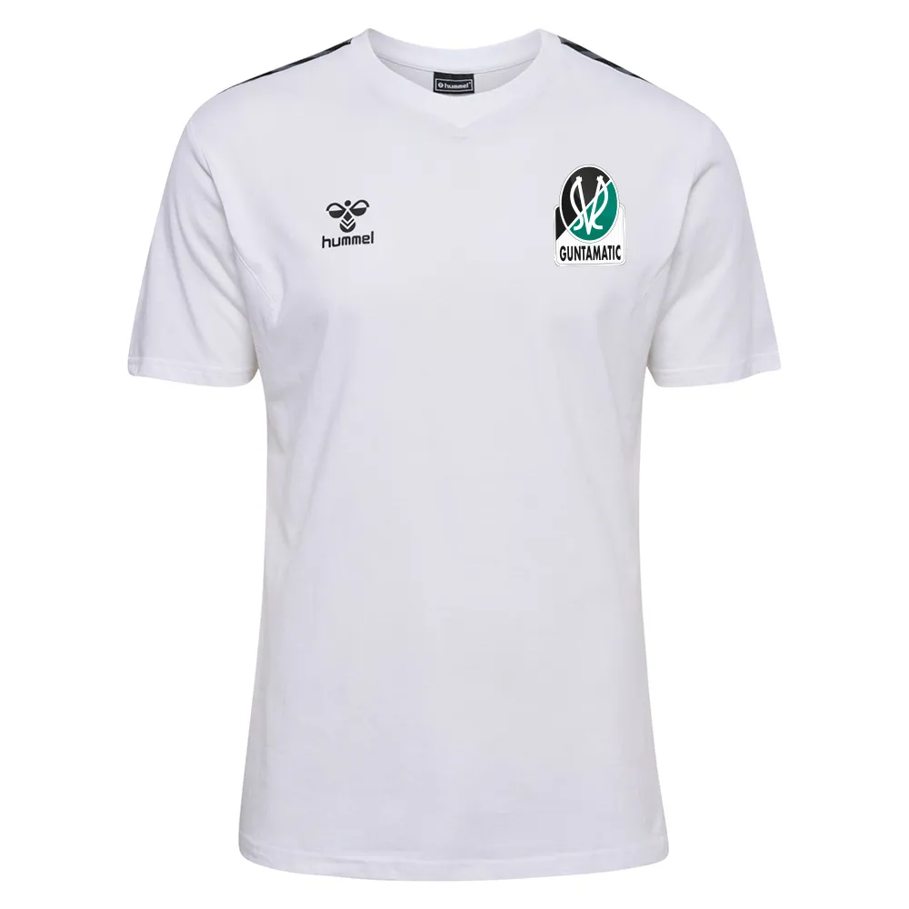 Das hmlAUTHENTIC CO T-SHIRT S/S ist ein klassisches T-Shirt mit kurzen Ärmeln und Rundhalsausschnitt. Es ist komplett aus Baumwolle in bequemem Jersey-Stoff gefertigt. Das gedruckte Logo und das klassische Chevrons-Band an den Schultern ergänzen das schlichte Design dieses T-Shirts von hummel.