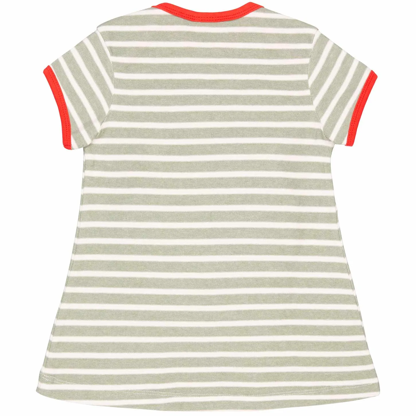 loud + proud Kleid Ringel olive Bio (Farbangabe des Herstellers: olive) – Aus Biobaumwolle, GOTS (Global Organic Textile Standard) zertifiziert und schadstofffrei Kleid aus weichem Jersey mit melierten Streifen, links herum verarbeitet. Vorne aufgesetzte Känguruhtasche. Am Saum mit Rüsche. Alle Kanten sind mit Feinripp in Kontrastfarbe eingefasst. Bis Größe 86/92 weit zu öffnendes Halsloch, ab Größe 98/104 Rundhals-Ausschnitt. Fähnchen an der Seitennaht. Made In Portugal. Waschbar bei 30°C.
